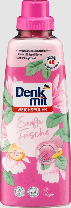 Pūkuotos tekstilės jausmas ant odos dieną, o vakare gulint minkštoje lovoje. Denkmit audinių minkštiklis su Natural Neofresh technologija sukuria minkštus, patogius skalbinius. Veganiška formulė išlygina pluoštus, palengvindama lyginimą. Audinių minkštiklis taip pat yra biologiškai skaidus ir susideda iš 95% natūralių ingredientų.” *Pakuotėje yra mažiausiai 70% perdirbto turinio.”