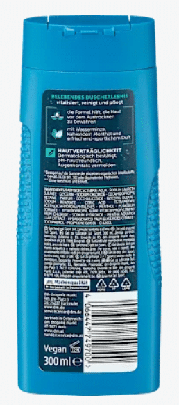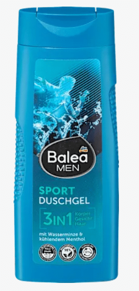 „Balea MEN Sport“ dušo želė suteikia tikrą gaivumo smūgį po treniruotės. Formulė su vandens mėtomis ir vėsinančiu mentoliu gaivina ir atgaivina – kiekvieną dieną. Šis švelnus dušo želė taip pat palieka odą malonų. Sudėtyje nėra mikroplastiko ar vandenyje tirpių, grynai sintetinių polimerų. *Remiantis bendra atskirų organinių ingredientų suma. **Pagal OECD 301, 302 arba lygiaverčius metodus.
