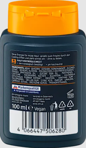 - Su vitaminu E, kofeinu + vėsinančiu poveikiu