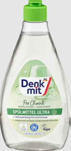 • „Pro Climate“, įvertintas gyvavimo ciklo ciklas – renatūralizuotas*. „Denkmit ultra Pro Climate“ indų ploviklis patikimai pašalina riebalus ir nešvarumus. Jis žavi ingredientais, pagamintais iš atsinaujinančių žaliavų. Lengvai suteptiems indams pakanka 2 ml 5 l vandens. Labai suteptiems indams pakanka 3 ml 5 l vandens.