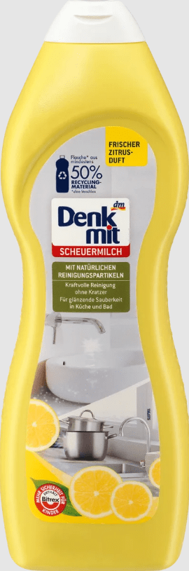 Denkmit šveitimo kremas pašalina net įsisenėjusius nešvarumus ir yra lengvai nuplaunamas. Natūralios poliravimo priemonės stipriai, bet švelniai valo paviršius. Denkmit šveitimo pienas idealiai tinka praustuvams ir tualeto dubenims, plytelėms, viryklėms, darbo paviršiams, kriauklėms, puodams ir keptuvėms – blizgančiam švarai be įbrėžimų.