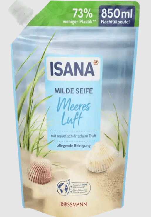 Isana meeres luft su pasirinktomis skalbimo medžiagomis ir natūraliu, su oda susijusiu priežiūros lipidu valo, saugo ir prižiūri odą plaunant rankas. Minkštas priežiūros kompleksas išlaiko rankas minkštas ir elastingas