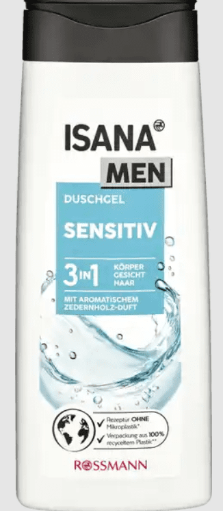 ISANA MEN 3in1 SHOWER GEL SENSITIVE švelniai valo ir gaivina.