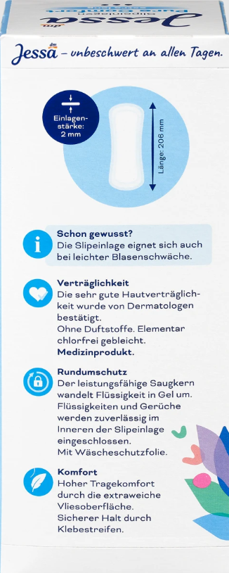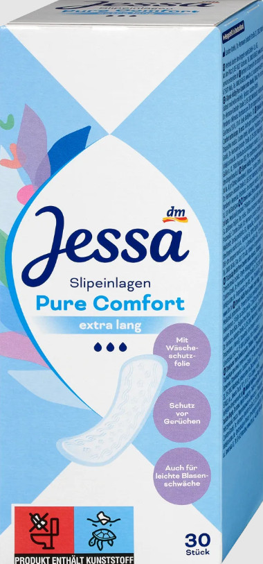 „Pure Comfort Extra Long“ kelnaičių įklotai iš Jessa užtikrina saugų laikymąsi su savo lipniomis juostelėmis. Įklotas turi galingą sugeriančią šerdį, kuri skystį paverčia geliu ir taip sulaiko kvapus kelnaičių įklotinėje. Puikiai tinka esant nedideliam šlapimo pūslės silpnumui. Už saugumo jausmą kasdieniame gyvenime.