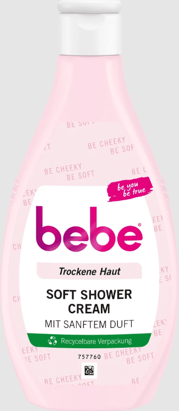 Bebe Soft Shower Cream palepina jūsų odą aksominiu švelnumu ir užtikrina lygią odos priežiūrą. Dušo gelio suderinamumas patikrintas dermatologiškai, todėl tinka ir jautriai odai. Kreminė dušo želė buvo specialiai sukurta sausai odai ir maitina ją ilgai išliekančia drėgme ir švelniu kvapu. Pakuotė taip pat yra perdirbama. Sudedamosios dalys, tokios kaip simondsijų aliejus ir pantenolis, drėkina odą, ilgą laiką palieka ją elastingą ir pastebimai švelnią.