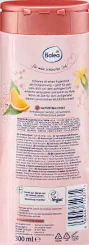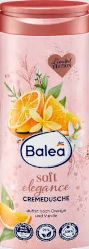 Balea Soft Elegance kreminis dušas puikiai tinka jautriai odai ir suteikia atsipalaidavimo akimirką. Dušo želė skleidžia kerintį apelsinų ir saldžios vanilės kvapą. Gaivinam odos pojūčiui. Receptas be mikroplastiko ir vandenyje tirpių, grynai sintetinių polimerų.