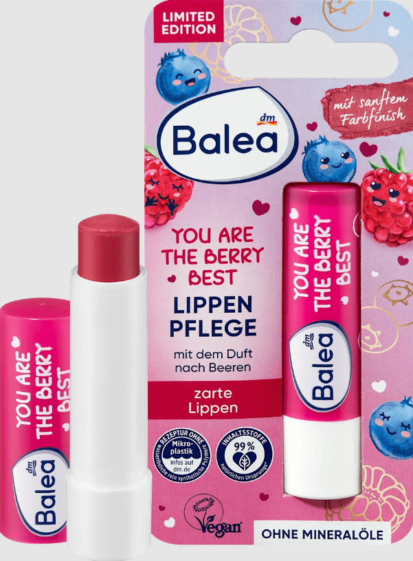 Lūpų priežiūra You are the best of Balea suteikia lūpoms blizgesio ir elastingumo. Priežiūros priemonės sudėtyje yra taukmedžio sviesto ir saulėgrąžų vaško, o po naudojimo paliekama švelni spalva. Suderinamumas su oda patvirtintas dermatologiškai. Sudėtis be mikroplastiko ir vandenyje tirpių grynai sintetinių polimerų
