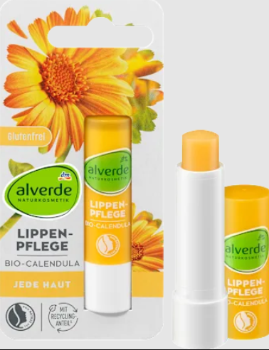 Alverde NATURKOSMETIK alverde lūpų balzamas Bio-Calendula apsaugo jautrias lūpas nuo išsausėjimo ir suskeldėjusių vietų, intensyviai maitina ir suteikia elastingumo, glotnumo pojūtį. Alverde Calendula lūpų balzame nėra sintetinių spalvų ir kvapiųjų medžiagų, taip pat silikonų ir parafinų. Sudėtis be mikroplastiko ir vandenyje tirpių grynai sintetinių polimerų.