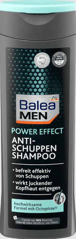 Šampūnas nuo pleiskanų Balea MEN Power Effect su Octopirox turi labai veiksmingą formulę. Pašalina iki 100% matomų pleiskanų ir kovoja su niežtinčia galvos oda. Sudėtis be mikroplastiko ir vandenyje tirpių grynai sintetinių polimerų. *Pakuotėje yra ne mažiau kaip 70 % perdirbto turinio.