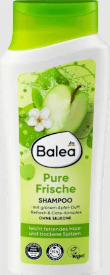 Pure gaivumo smūgis: Balea šampūnas Pure Freshness atgaivina plaukus ir galvos odą su žalio obuolio kvapu ir kompleksu su vitaminu B3 ir provitaminu B5. Ryškus blizgesys iki pat galiukų! Receptas be mikroplastiko ir vandenyje tirpių, grynai sintetinių polimerų.