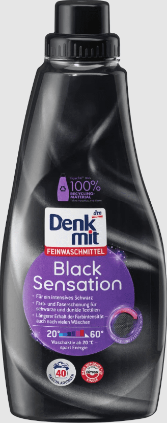 Skalbimo gelis Denkmit’s Black Sensation valo ir prižiūri juodus ir tamsius skalbinius. Spalvos intensyvumas išlaikomas – net ir po daugelio skalbimų – o tekstilė, kurioje yra medvilnės, apsaugoma nuo greito papilkėjimo ir blukimo. Idealiai tinka intensyviai juodai ir stiprioms tamsioms spalvoms. Be to, šaltai aktyvi formulė leidžia naudoti net 20°C temperatūroje, taip taupant energiją.